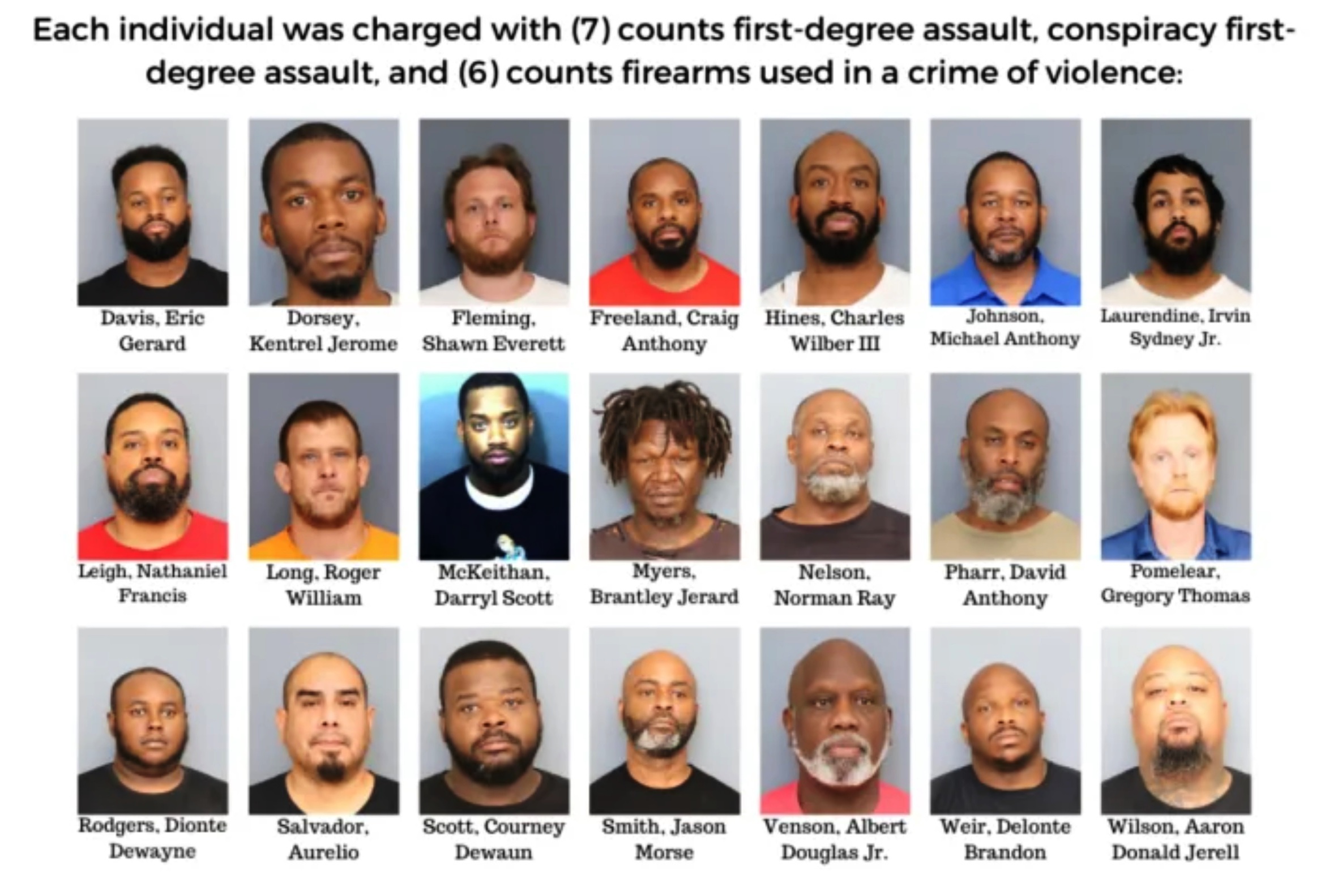07/22/2022 6:11 pm : Just across the DC line in Charles County Maryland, the Sheriff’s Office announced that 21 members of the Wheels of Soul MC have been identified and apprehended for their roles in a shooting involving the Chosen Few MC at Room 301 Lounge on Crain Highway in Waldorf, MD at 9 p.m. on Oct. 30, 2020